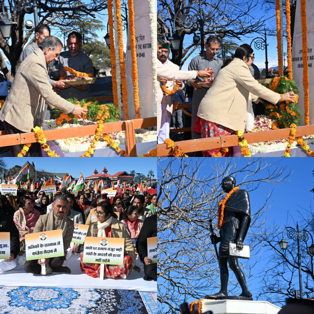 शहीद दिवस के अवसर पर मुख्यमंत्री ठाकुर सुखविन्द्र सिंह सुक्खू ने अन्य कांग्रेस नेताओं के साथ आज शिमला के ऐतिहासिक रिज मैदान में राष्ट्रपिता महात्मा गांधी की पुण्यतिथि पर श्रद्धासुमन अर्पित किए। श्रद्धांजलि अर्पित करने के उपरान्त कांग्रेस के नेताओं ने महात्मा गांधी राष्ट्रीय ग्रामीण रोज़गार गारंटी अधिनियम (मनरेगा) का नाम बदलने और योजना को कमजोर किए जाने के विरोध में प्रातः 11ः00 बजे से दोपहर 1ः00 बजे तक दो घंटे का उपवास रखा।