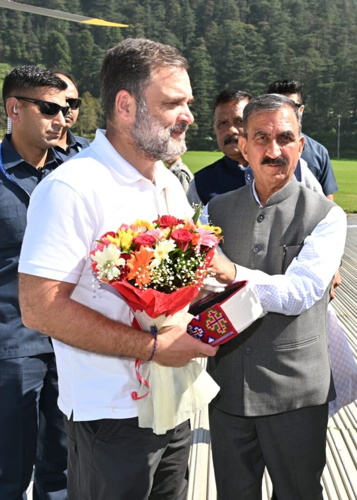 राहुल गांधी का स्वागत करते हुए मुख्यमंत्री ठाकुर सुखविंदर सिंह सुक्खू