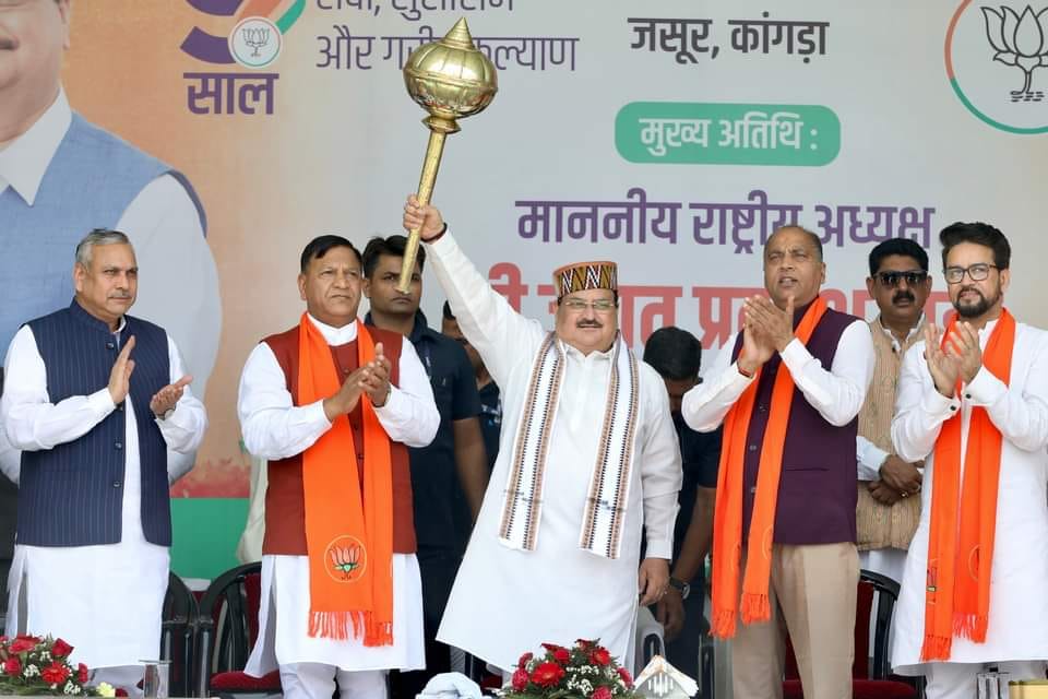 कांग्रेस के नेताओं ने देश में भारत जोड़ो यात्रा नहीं निकाली बल्कि भारत तोड़ो यात्रा निकाली है। जो लोग देश के टुकड़े टुकड़े करने के नारे लगाते हैं कांग्रेस के युवराज उनका साथ देते हैं, इस कार्य के लिए उनको देश से माफी मांगनी चाहिए।उन्होंने कहां की विपक्षी दल केवल नफरत का मेगा शॉपिंग मॉल बनकर रह गए हैं आज प्रदेश में छल कर सत्ता में आने का कार्य कांग्रेस ने किया है। हिमाचल प्रदेश को केंद्र सरकार ने एम्स, मेडिकल कॉलेज, पीजीआई सैटलाइट सेंटर, बल्क ड्रग पार्क, आई आई टी, आईआईएम जैसी बड़ी सौगातें दी है, हम मंडी में एयरपोर्ट बनाकर प्रदेश का विकास चाहते हैं। उन्होंने कार्यकर्ताओं से आह्वान किया की इस अमृतकाल में हम सब संकल्प लेते हैं कि भारत को एक विकसित राष्ट्र बनाना है। इस अवसर पर भाजपा प्रदेश अध्यक्ष डॉ राजीव बिंदल, केंद्रीय मंत्री अनुराग ठाकुर, नेता प्रतिपक्ष जयराम ठाकुर, भाजपा राष्ट्रीय उपाध्यक्ष सौदान सिंह, भाजपा प्रभारी अविनाश राय खन्ना, सह प्रभारी संजय टंडन, सांसद नरेश बांसल, विपिन परमार, त्रिलोक कपूर, सांसद कृष्ण कपूर, हंसराज, सरवीण चौधरी, राकेश पठानिया उपस्थित रहे।