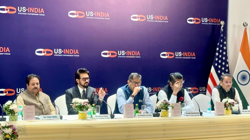 नई दिल्ली/हिमाचल प्रदेश:13 नवम्बर 2025,  पूर्व केंद्रीय मंत्री व हमीरपुर लोकसभा क्षेत्र से सांसद श्री अनुराग सिंह ठाकुर ने आज नई दिल्ली में अमेरिका-भारत रणनीतिक साझेदारी मंच (US–India Strategic Partnership Forum) द्वारा आयोजित कार्यक्रम में भारत व अमेरिका के मज़बूत द्विपक्षीय संबंधों में भारत की भूमिका व वैश्विक आतंकवाद पर अपने विचार रखे। इस कार्यक्रम में श्री अनुराग सिंह ठाकुर के साथ कांग्रेस नेता व राज्यसभा सांसद श्री राजीव शुक्ला,  भाजपा नेता व राज्यसभा सांसद श्री जय पांडा, श्री आरपीएन सिंह व श्री विजय चौथाईवाला भी प्रमुख रूप से मौजूद रहे।