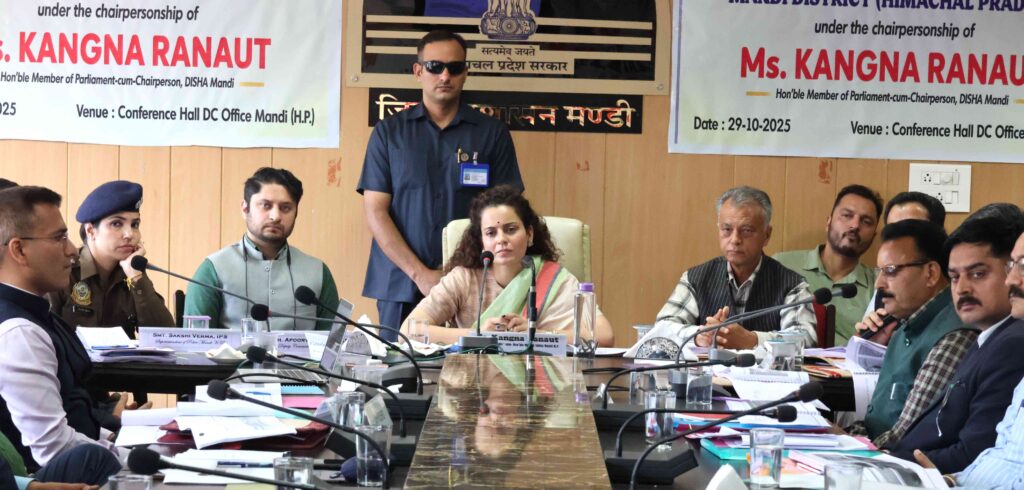 मंडी, 29 अक्तूबर। जिला विकास समन्वय एवं निगरानी समिति (दिशा) की बैठक आज उपायुक्त कार्यालय मंडी के सम्मेलन कक्ष में आयोजित हुई। बैठक की अध्यक्षता लोकसभा सांसद एवं समिति की अध्यक्ष कंगना रणौत ने की। बैठक में विधायक अनिल शर्मा, राकेश जंबाल, इन्द्र सिंह गांधी और दिलीप ठाकुर, उपायुक्त अपूर्व देवगन, समिति सदस्य, जिला स्तरीय अधिकारी तथा विभिन्न विभागों के प्रतिनिधि उपस्थित रहे।