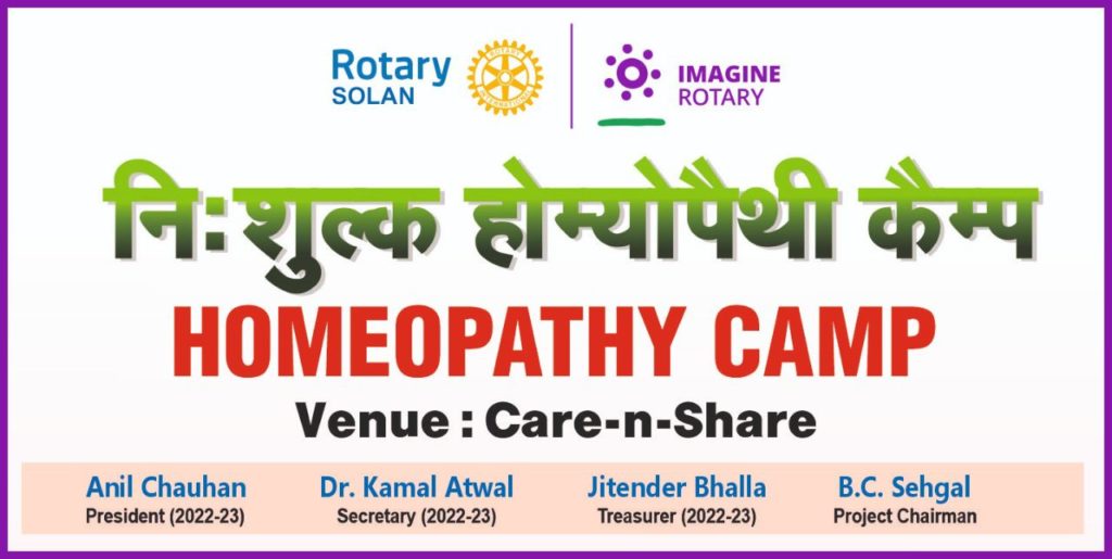 रोटरी सोलन ने देश की आजादी के 75 साल पूरा होने पर निश्शुल्क होम्योपैथिक कैंप लगाया गया