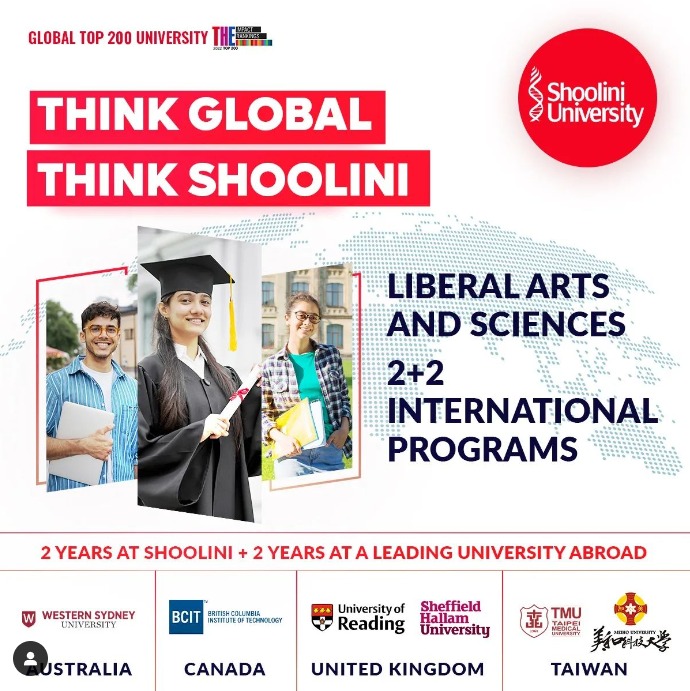 सोलन हिमदेव न्यूज़ 01 अक्टूबर 2022: वैश्विक संपर्क के अवसर पैदा करने की अपनी प्रतिबद्धता को निभाते हुए शूलिनी यूनिवर्सिटी अब 2 प्लस 2 स्टडी एब्रॉड प्रोग्राम लांच किया है। यह उन छात्रों के लिए फायदेमंद साबित होगा जो कम लागत पर विदेश में डिग्री हासिल करना चाहते हैं।जो छात्र 4 साल का डिग्री प्रोग्राम जैसे बीबीए,बीए,बीएससी और बीटेक करते हैं,वे इस प्रोग्राम के लिए नामांकन कर सकते हैं। छात्र जो पहले 2 साल शूलिनी यूनिवर्सिटी में पढ़ते हैं वे अंतिम 2 साल विदेश में एक प्रमुख यूनिवर्सिटीस में पढ़ सकते हैं।इच्छुक छात्र शूलिनी यूनिवर्सिटी में चार वर्षीय आर्टिक्यूलेशन प्रोग्राम में दाखिला लेते हैं और 6 विश्व स्तरीय यूनिवर्सिटीज में से एक से अंतिम डिग्री प्राप्त कर सकते हैं।ऑस्ट्रेलिया,कनाडा,यूके और ताइवान के विश्वविद्यालयों के साथ अपनी साझेदारी के माध्यम से शूलिनी यूनिवर्सिटी ट्रेडिशनल डिग्री करिकुलम के लिए एक आकर्षक विकल्प प्रदान करती है।2 प्लस 2 प्रोग्राम के मार्ग का लाभ उठाकर छात्र वैश्विक संपर्क और अवसर प्राप्त कर सकते हैं।कोई भी मौजूदा द्वितीय वर्ष का छात्र इस वैश्विक अवसर को हासिल करना चाहता है वह शूलिनी यूनिवर्सिटी में अंतर्राष्ट्रीय मामलों के कार्यालय (ओआईए)से संपर्क कर सकता है।