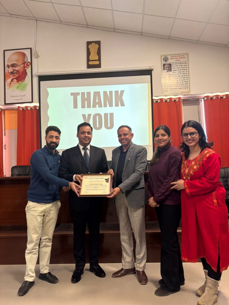 प्रोफेसर नंदन शर्मा, एसोसिएट डीन, विधि विज्ञान संकाय ने एडवोकेट अभिमन्यु झांबा के बहुमूल्य योगदान के लिए उनका आभार व्यक्त किया और छात्रों को पेशेवर उत्कृष्टता के लिए तैयार करने हेतु ऐसे और अधिक उद्योग-उन्मुख सत्र आयोजित करने की अपनी प्रतिबद्धता की पुष्टि की।